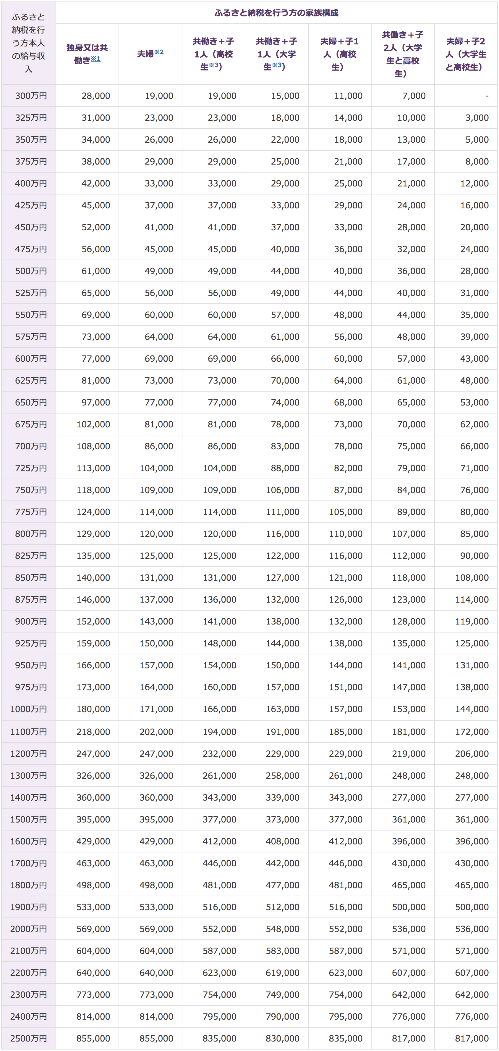 ※2「夫婦」は、ふるさと納税を行う方の配偶者に収入がないケースを指します。